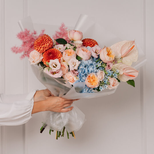 Вы можете оформить любой понравившийся букет в шляпную коробку. Шедевры флористики от Novikov Group с доставкой в течение 2,5 часов или самовывозом из любого нашего салона
