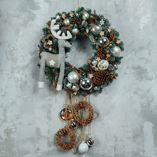 Новогодний венок с оленем 58 см.