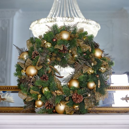 Новогодний венок из новогоднего декора, шаров, нобелиса искусственного (50 см).