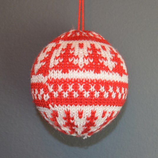 Игрушка на елку «Шар красно-белый вязаный», 8 см